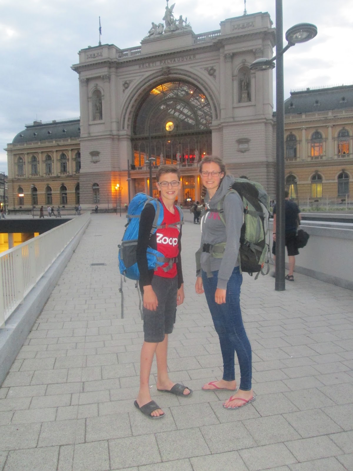 Firstly, Euan and Dad outside the parliament in Budapest...